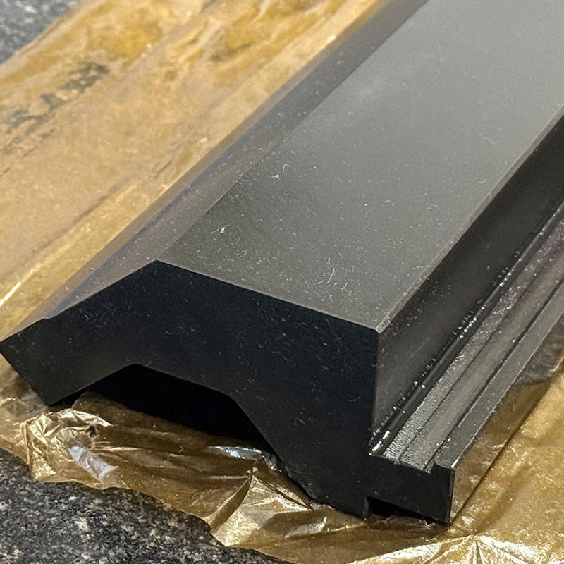 هذا قالب على شكل حرف V واحد بنمط Bystronicمصنوعة من فولاذ الأدوات 42CrMo المُقسّى، تتفوق هذه الأداة في التطبيقات التي تتطلب ثنيات دقيقة ونظيفة في المواد الرقيقة، مثل أغلفة الأجهزة الإلكترونية، وأقواس المستشعرات، وتجميعات الفولاذ المقاوم للصدأ المدمجة. ولضمان اختيار القالب المناسب، يجب أن تتطابق فتحة V مع سُمك الصفيحة ونصف القطر المستهدف لضمان تشكيل مستقر ومنع التحميل الزائد على مكبس الثني. ينبغي على المشغلين تجنب الضغط الزائد والتحقق دائمًا من محاذاة الأدوات للحفاظ على دقة ثني ثابتة وإطالة عمر القالب.